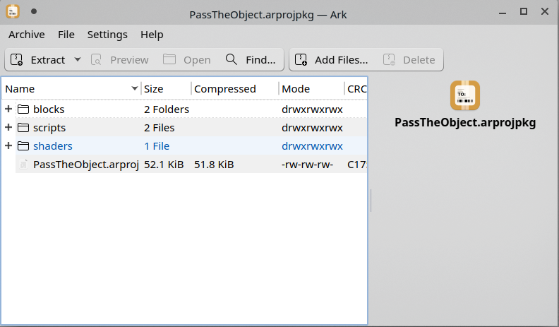내부의 PassTheObject.arproj이 실제로 로컬 디스크 상에 써지는지 확인